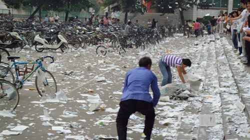 不過撕書歸撕書,而像南充這名女生提前寫信致歉的舉動,還是讓人稱贊。在以前關(guān)于撕書的諸多討論中,我們往往更強(qiáng)調(diào)學(xué)生有宣泄的權(quán)利,他們的三年高中生涯太辛苦太不容易,好不容易有一個(gè)釋放學(xué)業(yè)壓力與青春荷爾蒙的出口,不妨讓他們盡情地撕扯吼叫等等。這些說法并沒有錯(cuò),但似乎也該考慮一下保潔員的感受,孩子們不容易保潔員就容易嗎?面對著世界末日般沸沸揚(yáng)揚(yáng)的紙屑,保潔員的辛苦誰來理解?